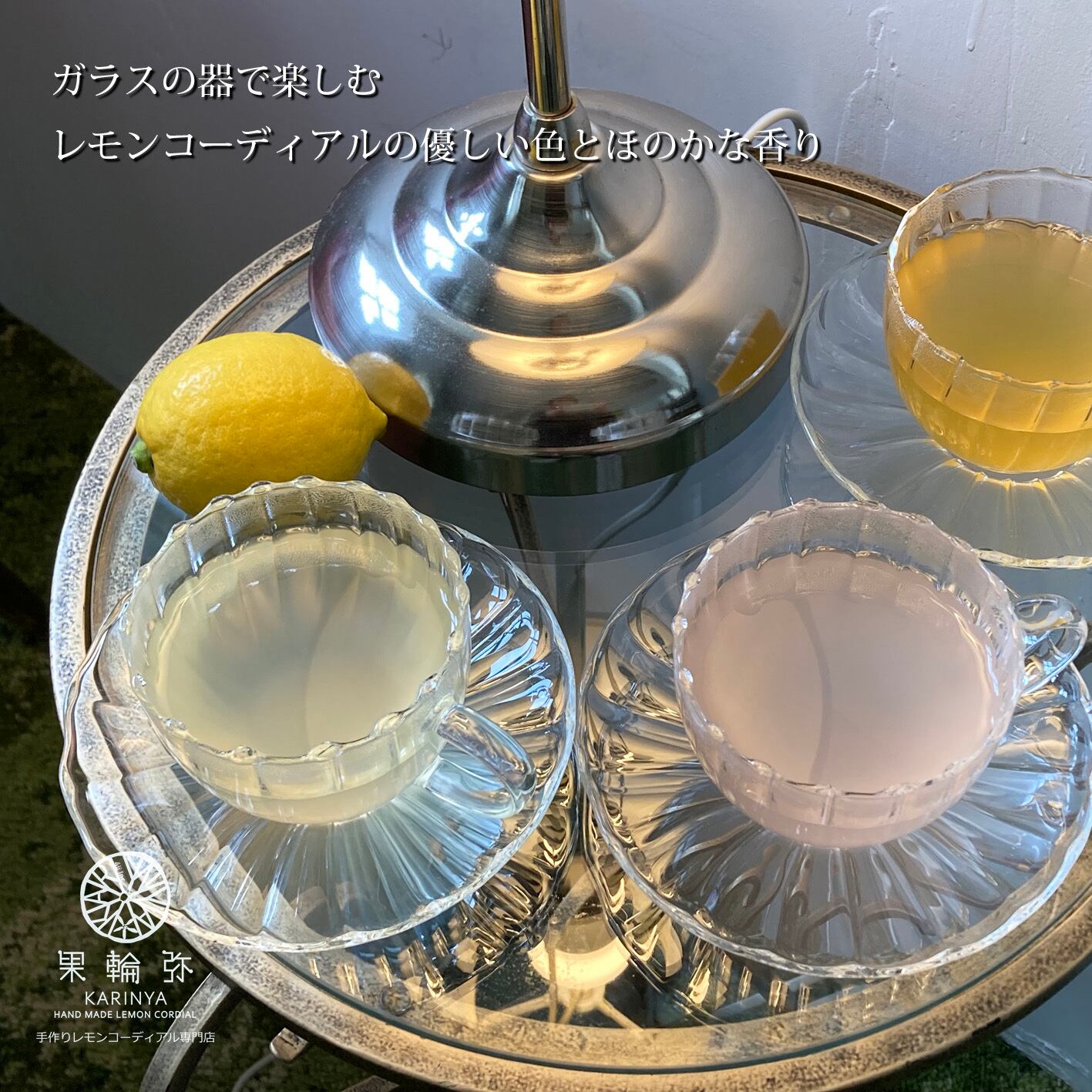 このレモンシロップをベースに独自の方法で作ったハーブやフルーツのコーディアルをブレンドして出来上がったのが、果輪弥のレモンコーディアルです。